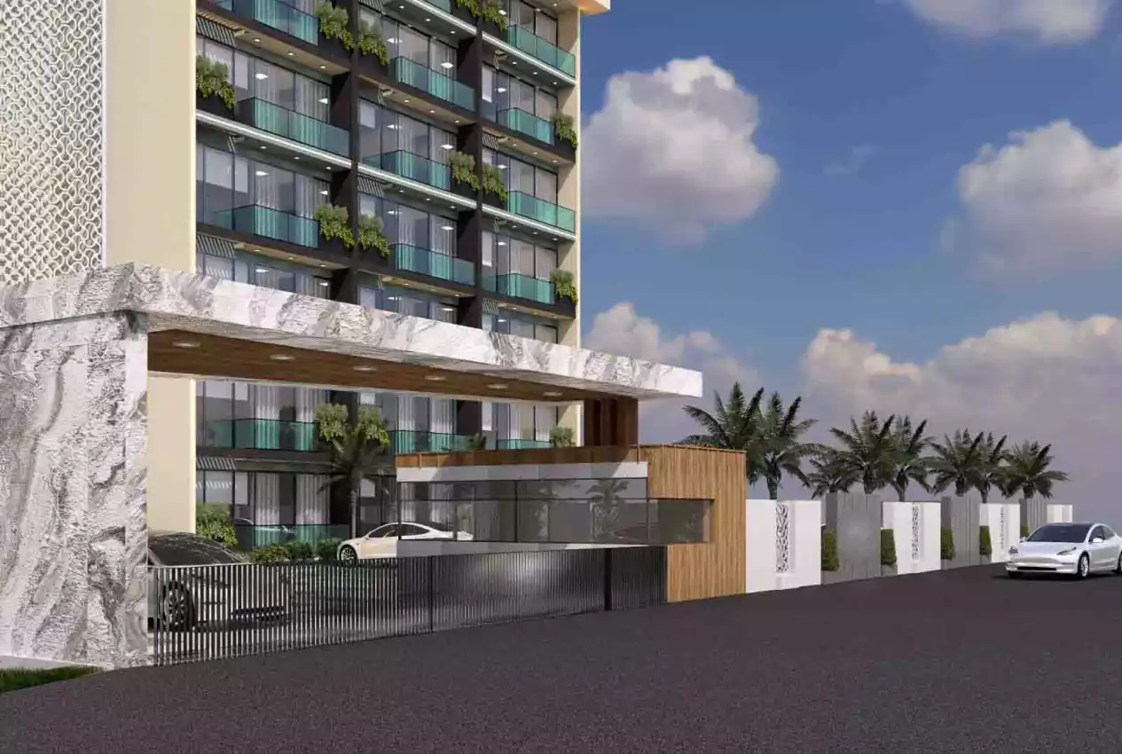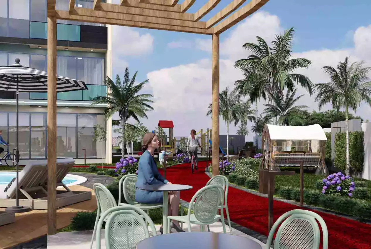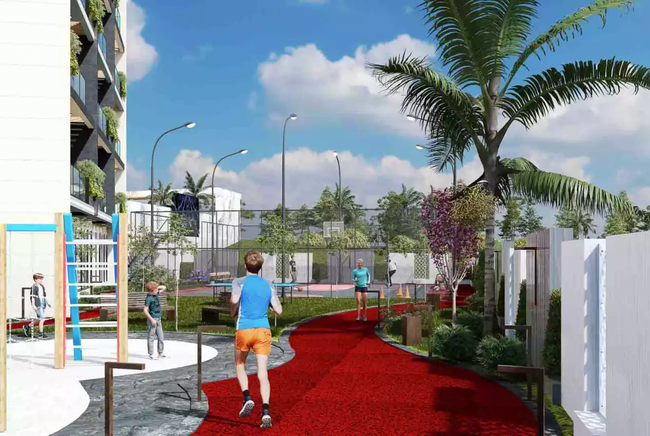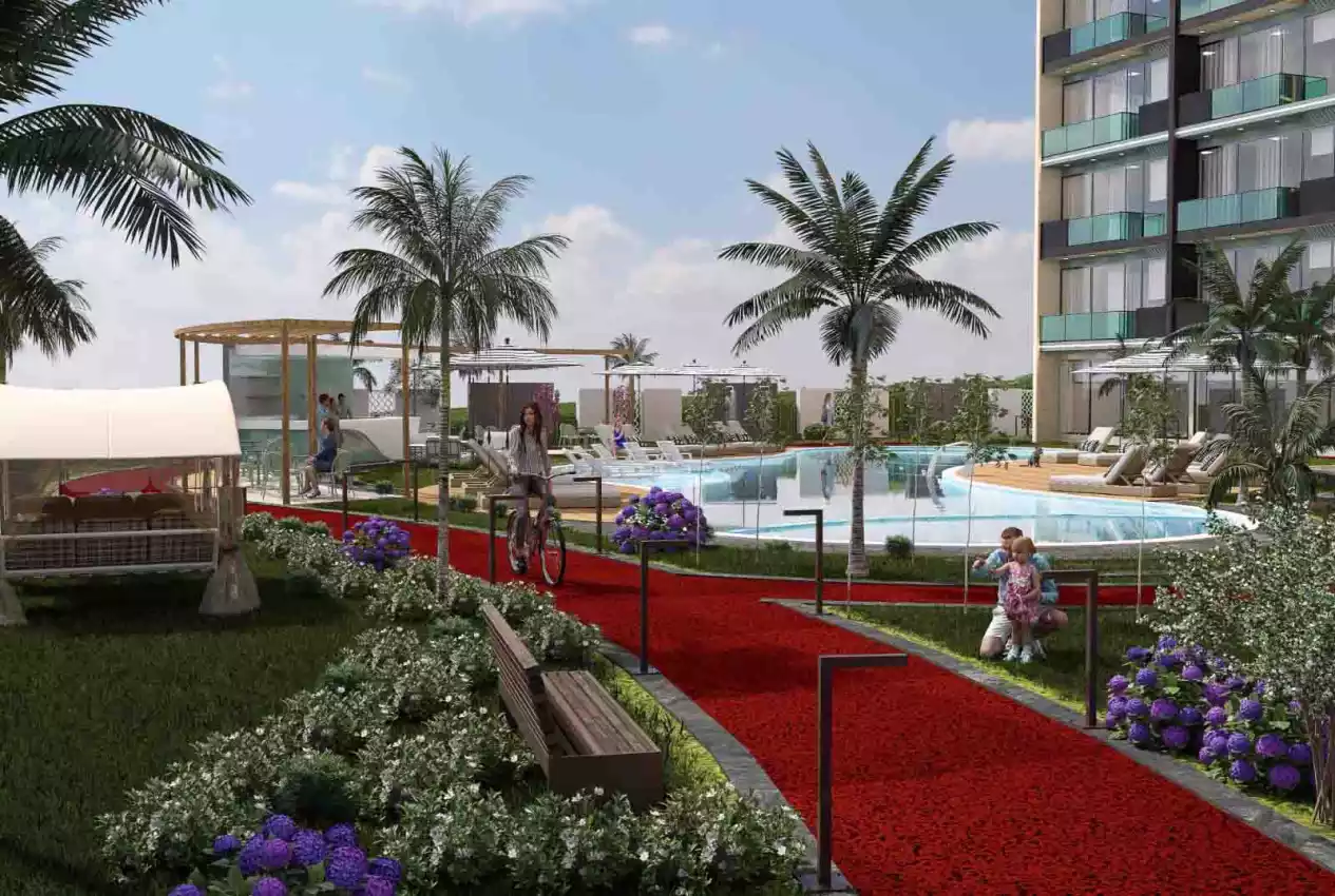 Перед зданием будет парк Belediye. Появится новая дорога, которая ведет прямо к пляжу. Важно отметить, что рядом с резиденцией не будет построек, которые могут закрыть вид на море, потому что там сельскохозяйственные земли, которые не подходят для строительства.