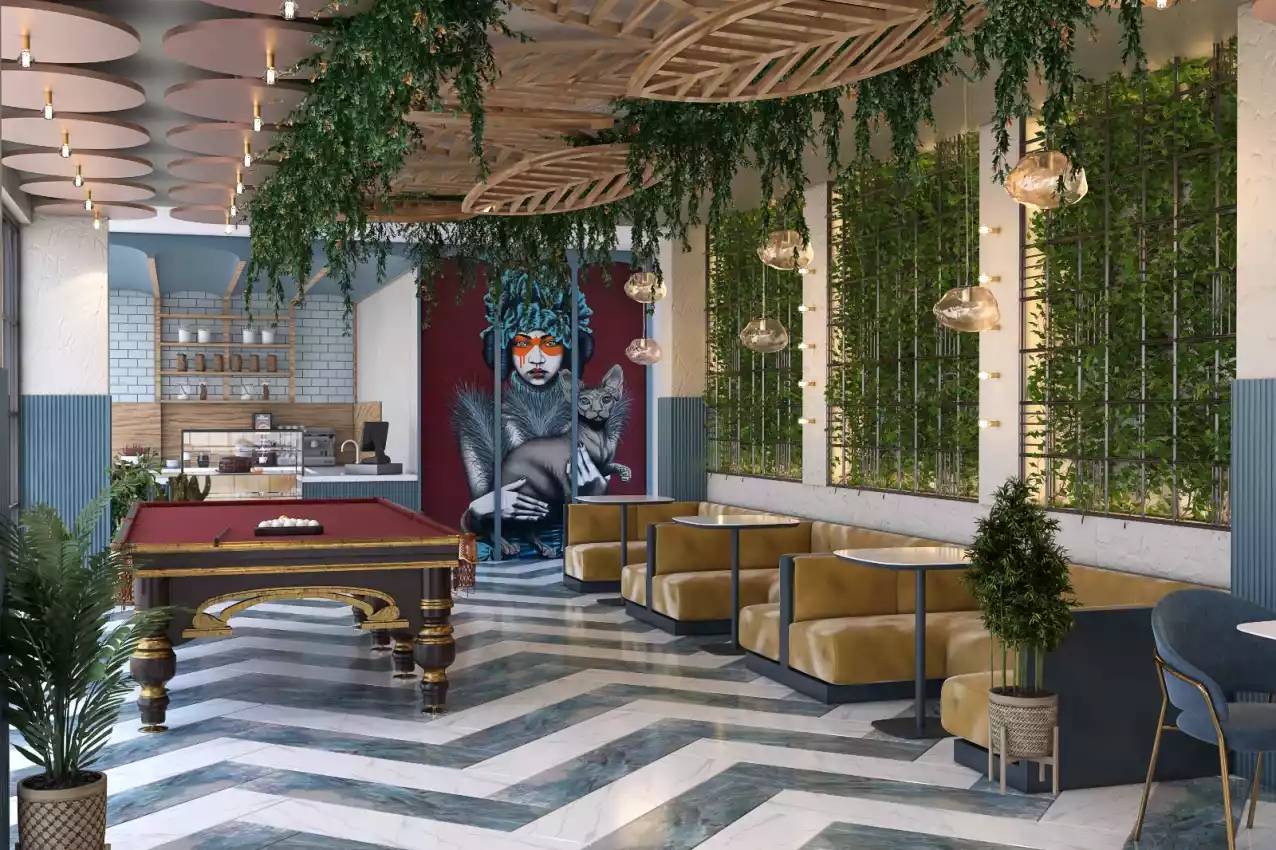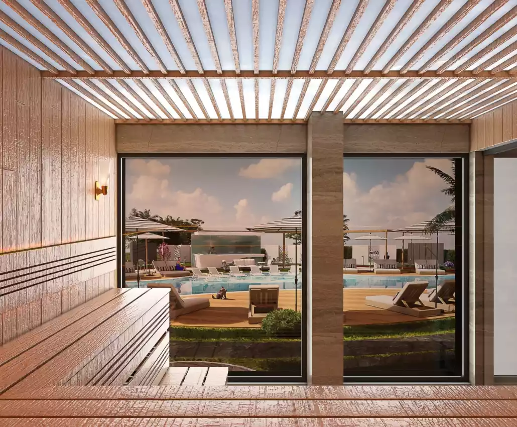 зона барбекю ,открытая парковка , бассейн , центральное спут. ТВ ,детская площадка, детская комната, парк для собак, турецкая баня, сауна, соляная комната, парная комната,лобби , массажная комната, кинотеатр, комната отдыха ,фитнес , кафетерий ,охрана и консьерж, Зарядная станция для электронных велосипедов и электромобилей, На территории резиденции есть беговая дорожка, Собачий парк, 7/24 камеры наблюдения.