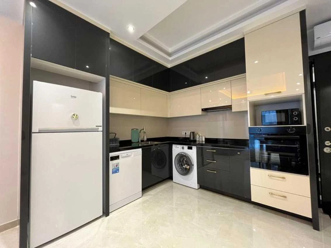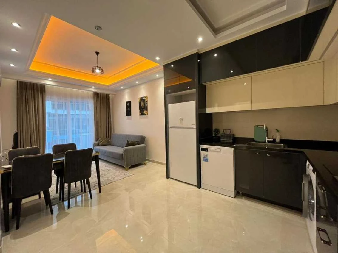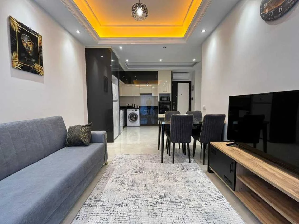 Представляем вашему вниманию просторную квартиру 1+1 в комплексе премиум-класса с инфраструктурой 5* отеля в популярном курортном районе Аланьи - Махмутларе.Квартира имеет изумительную локацию - вся необходимая городская инфраструктура будет у вас в пешей доступности, равно как и до моря всего 250 м. - это 5 мин. пешком. До центра Аланьи всего 7 км, рядом с комплексом находятся остановки общественного транспорта, откуда можно удобно и быстро доехать в любой конец Аланьи.Квартира располагается на 6-ом этаже 12-ти этажного дома.Особенности квартиры:Планировка 1+1 общей площадью 55 кв.м. кухня, объединенная с гостиной, 1спальня, балкон-терраса с видом на море и город.Окна выходят на юго-запад.Инфраструктура комплекса:Территория комплекса утопает в зелени! Сад комплекса ничуть не уступает дворцовым паркам — развито множество клумб, дорожек, водоемов и установлены фонтаны. Инфраструктура соответствует уровню 5-звездочного отеля и не оставит равнодушным самого взыскательного клиента.