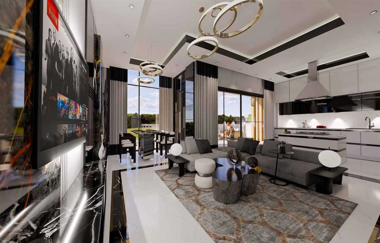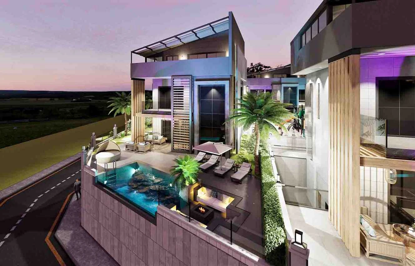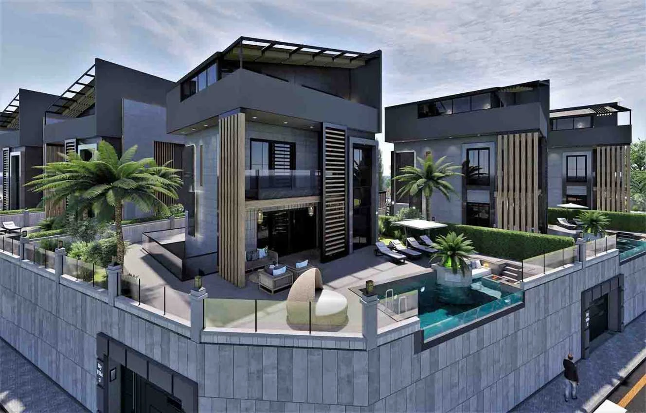 Виллы строятся по индивидуальному проекту и могут быть адаптированы под покупателя.Продаются со множеством удобств, повышающих их эксклюзивность, безопасность и комфорт проживания: система "Умный дом" (управление внутренним освещением, видеодомофоном, жалюзи, кондиционерами, обнаружение наводнений и пожаров) Стальная входная дверь, высококачественная керамическая напольная плитка, теплые полы, укомплектованные ванные комнаты, кухонная мебель, полная установка кондиционеров (тепло-холод) на первом и втором этажах, автоматические ворота для въезда автомобиля на территорию и в гараж на два парковочных места.