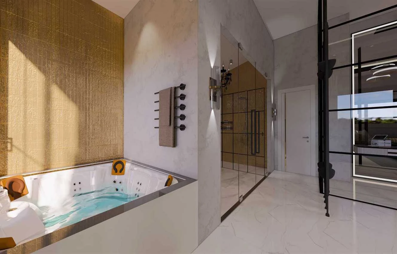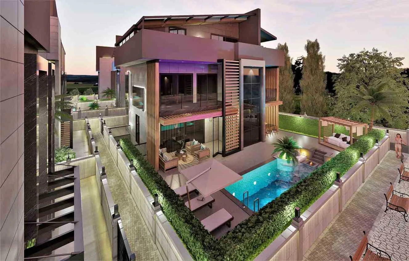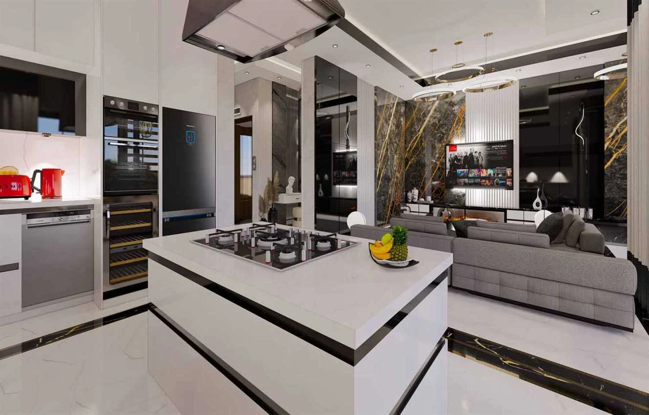 Виллы строятся по индивидуальному проекту и могут быть адаптированы под покупателя.Продаются со множеством удобств, повышающих их эксклюзивность, безопасность и комфорт проживания: система "Умный дом" (управление внутренним освещением, видеодомофоном, жалюзи, кондиционерами, обнаружение наводнений и пожаров) Стальная входная дверь, высококачественная керамическая напольная плитка, теплые полы, укомплектованные ванные комнаты, кухонная мебель, полная установка кондиционеров (тепло-холод) на первом и втором этажах, автоматические ворота для въезда автомобиля на территорию и в гараж на два парковочных места.